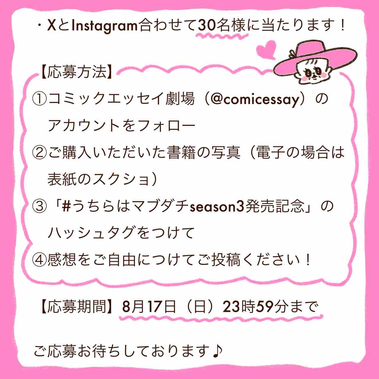 プレゼントキャンペーン🎁 2025年07月10日 カテゴリ : うちらはマブダチ ちなみに「親分厄除けステッカー」を置いてくださってる書店さんはこちらになります↓「うちらはマブダチseason3」7月11日発売!https://www.amazon.co.jp/dp/4046848693/