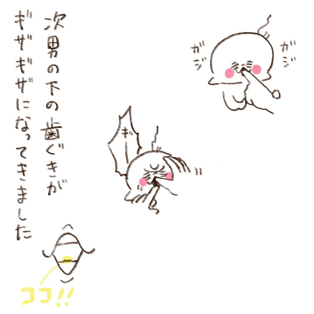 次男にかすかに歯が生えてきました